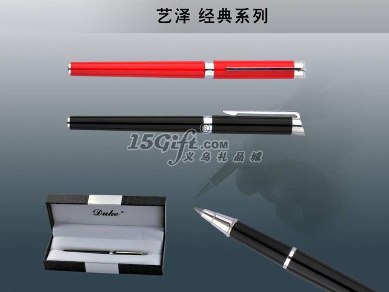 產(chǎn)品介紹: 筆套烤漆筆桿印刷烤漆;螺旋式進(jìn)口墨水膽; 包裝介紹: 盒內(nèi)塑胚,黑色荔枝紋,內(nèi)襯白色絨布;外有紙?zhí)祝?nbsp; 產(chǎn)品類型: 此款筆有銥金筆、寶珠筆兩種; 產(chǎn)品制作: 筆桿可印刷.激光鐳射、筆夾雕刻等多種制作客標(biāo)的工藝; 盒子制作: 盒面內(nèi)襯上可印客標(biāo)。